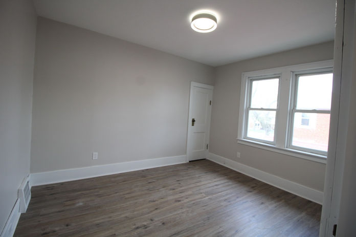 The bedrooms are all a nice size, but unfortunately that was about the only nice thing about them. We got rid of the dark paint and broken ceiling fans, replaced the lighting with LED ceiling mount lights, and replaced the badly damaged and scratched floors with new vinyl flooring.